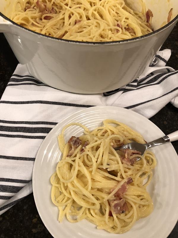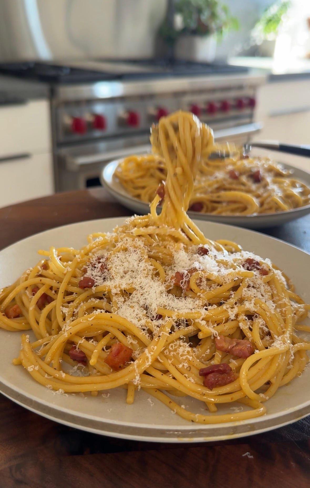 Carbonara was born in Rome from simplicity and instinct. Eggs pecorino guanciale black pepper and no cream.